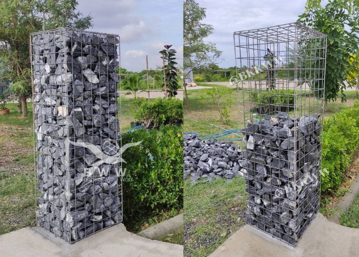 - กล่องเกเบี้ยนใส่หิน ตกแต่งสวน