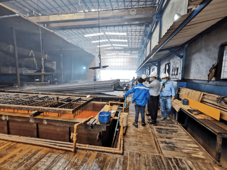 - วิธีการ → นำชิ้นงานเหล็กทั้งชิ้นลงไปจุ่มในอ่างสังกะสีหลอมเหลวที่อุณหภูมิประมาณ 450°C ทำให้เกิดการเคลือบสังกะสีหนาแน่นทั่วถึง ทั้งภายนอกและภายในของชิ้นงาน
