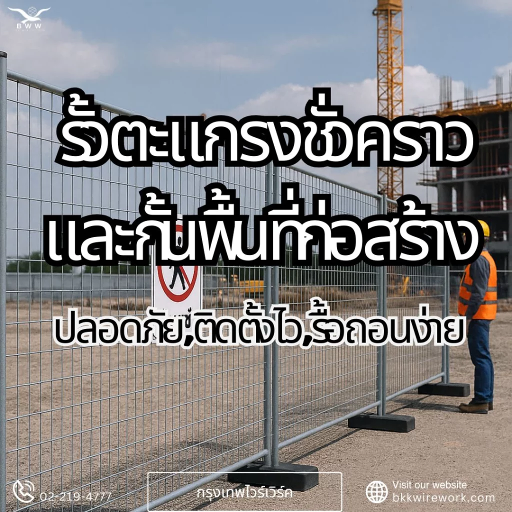 หากสนใจรั้วตะแกรงเหล็กชั่วคราวหรือถาวร บริษัท กรุงเทพ ไวร์เวิร์ค จำกัด ยินดีให้บริการ เรามีความเชี่ยวชาญในเรื่องลวดและรั้วตาข่ายมายาวนานกว่า40ปี ไม่ว่าจะเป็น ตะแกรงอาร์ค ตะแกรงสาน ตาข่ายถัก หรือตาข่ายสำเร็จรูป ก็สามารถทักเข้ามาติดต่อสอบถามได้ครับ