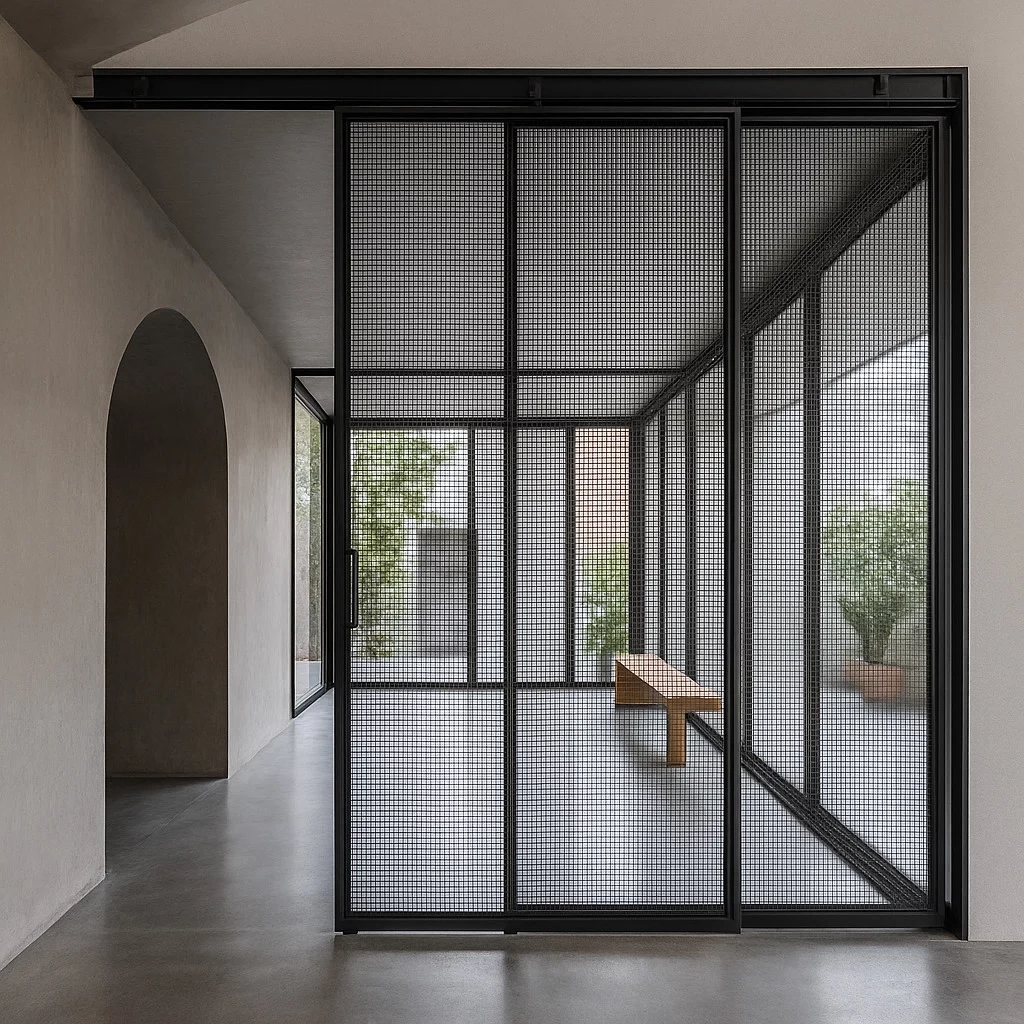 🧱 2️⃣ ฉากเลื่อนตะแกรง (Mesh Sliding Partition)